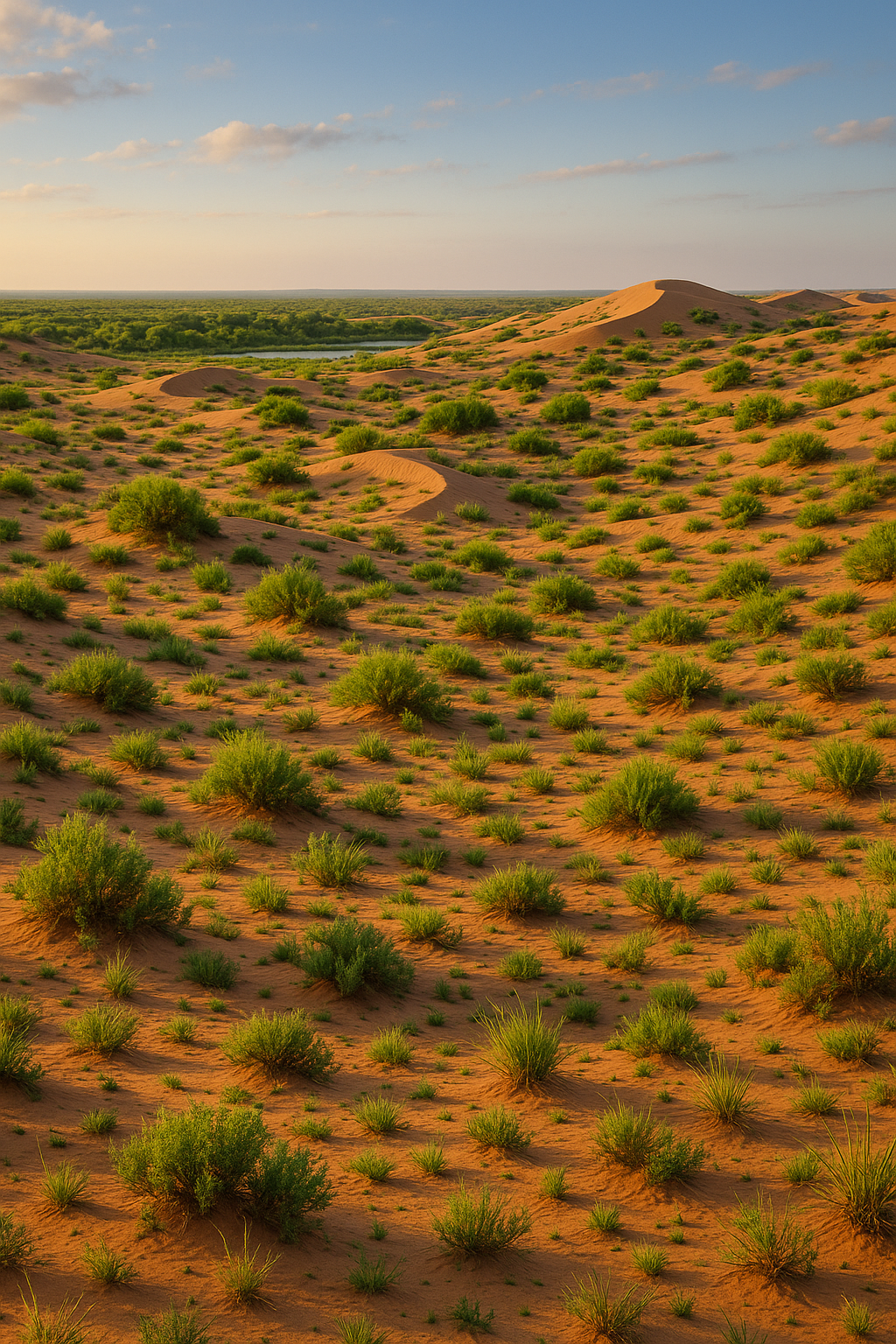 Our plant-based sand-binding material, developed with input from academic and industrial partners, offers a biodegradable, non-toxic solution. Applied as a liquid spray at 0.5–1.0% concentration and 2–4L per m², the material quickly forms a solid layer over sand, achieving surface crust thickness of over 1 cm within a day. This crust stabilizes the ground, resists wind erosion, and enables moisture retention creating a protective foundation for natural recovery or direct vegetation planting.